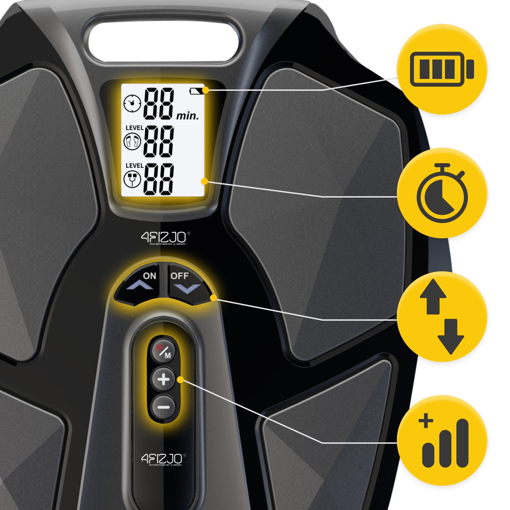 EMS elektrostimuliacija – mažo dažnio elektriniai impulsai stimuliuoja raumenis, padeda stiprinti jų jėgą ir ištvermę, gerina kraujotaką. Tai itin naudinga reabilitacijai po traumų. EMS režime yra 15 skirtingų impulsų kombinacijų.